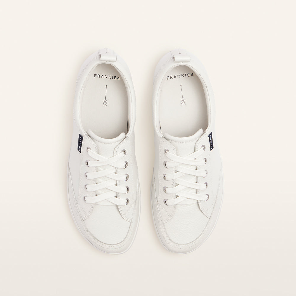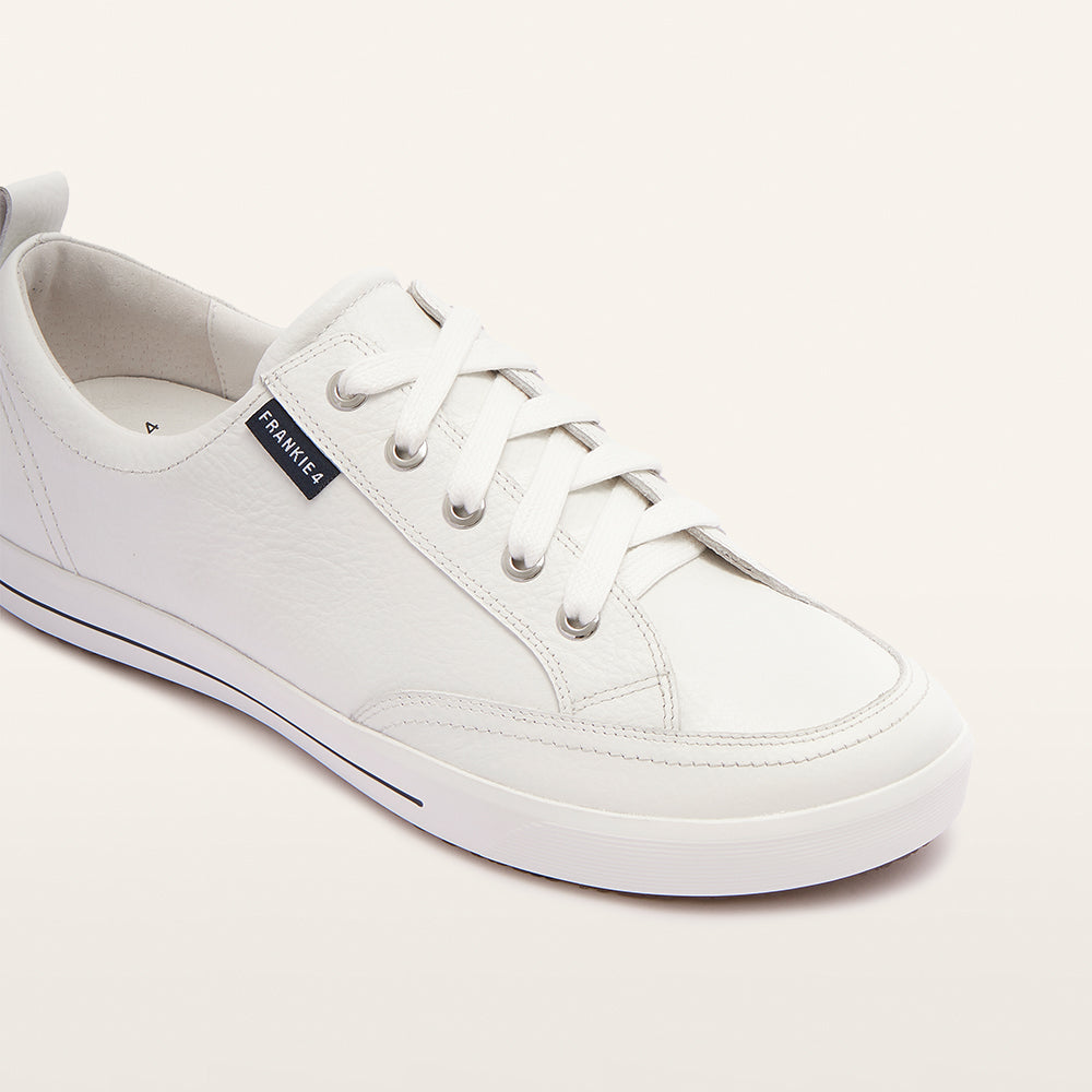 Enhance your daily wardrobe with Ellie in statement White Tumbled. This refreshed favourite maintains the same fit and feel you love but with a slightly softened toe for a contemporary touch. Featuring jacquard-weave ribbon laces and additional recycled cotton laces provided for versatile styling, Ellie is a mainstay with true versatility. With a triple-layer support and cushion system, custom fit options, and podiatrist-designed footbed technology, Ellie combines classic style with all-day comfort. Handcrafted leather and eye-catching sole details complete the look .